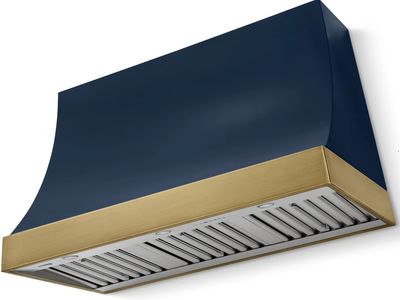 AGA Marquee 48" Indigo Wall Mounted Range Hood with Antique Brass Trim