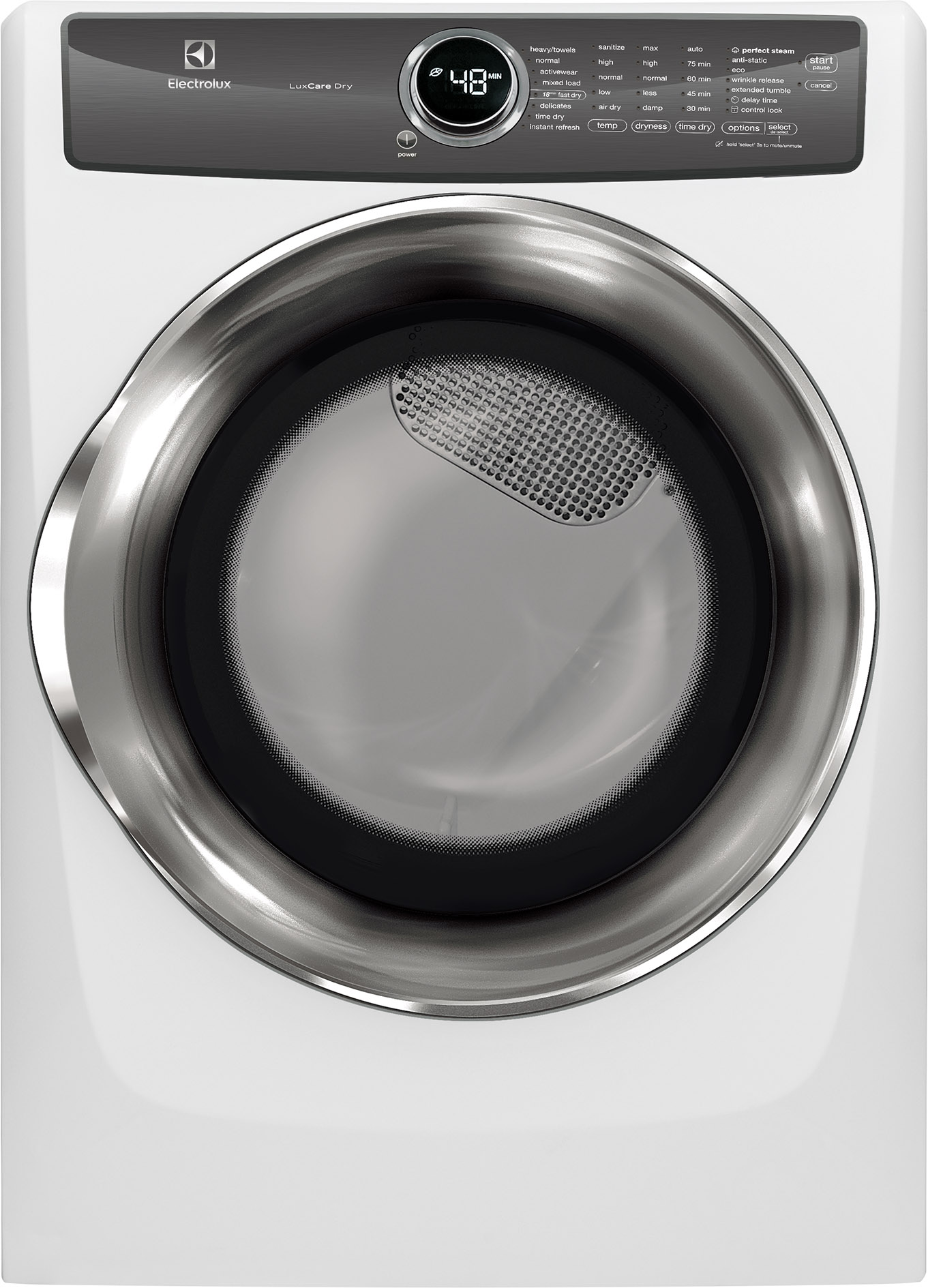 The Electrolux Perfect Steam electric dryer with LuxCare Dry system protects fabrics by safely and fully drying clothes. Remove wrinkles and quickly refresh items with steam in 10 minutes with Instant Refresh cycle. Quickly dry the items you need most with the 18-Minute Fast Dry.Read More