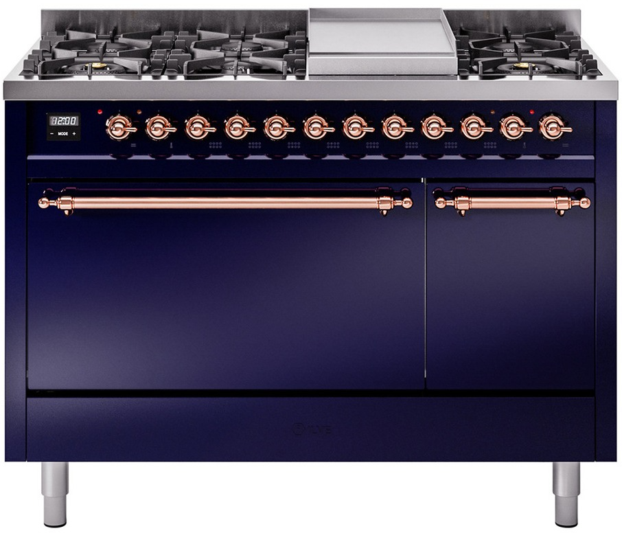 Introducing the new Nostalgie II 48" dual fuel range, a classic addition with a touch of innovation to any kitchen. This range feature sealed burners equipped with total black brass flame spreader that has a non-stick nanotechnological coating, heavy cast iron grates, 3.5 + 1.52 cu. ft. total double oven capacity and soft closing door system.Read More