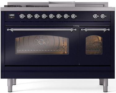 Introducing the new Nostalgie II 48" dual fuel range, a classic addition with a touch of innovation to any kitchen. This range feature sealed burners equipped with total black brass flame spreader that has a non-stick nanotechnological coating, heavy cast iron grates, 3.5 + 1.52 cu. ft. total double oven capacity and soft closing door system.Read More